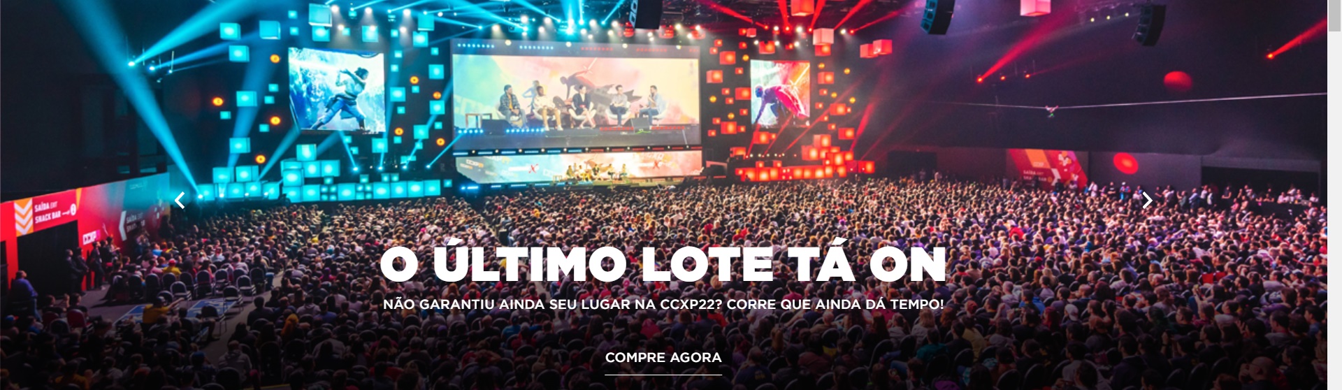 Até o momento, a CCXP22 conta com ingressos disponíveis nas categorias de ingresso de Quinta, Sexta, Domingo, Epic e Unlock. Para os fãs que ainda têm interesse em adquirir suas credenciais, basta acessar o site oficial ingressos.ccxp.com.br. O evento acontece nos dias 1 a 4 de dezembro na São Paulo Expo.